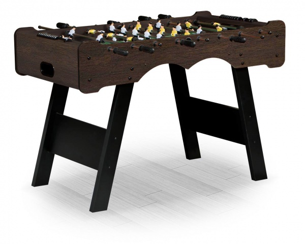 - ➕ Функция складывания. Нужно сохранить побольше свободного пространства в помещении? Тогда стоит отдать предпочтение складному настольному футболу. Его продуманная конструкция в сложенном виде очень компактна и не будет занимать много места. Механизм складывания может быть разным, но самый оптимальный – вертикальный. При складывании игровое поле поднимается вверх и стол превращается в своеобразную стойку, которую можно задвинуть в шкаф или кладовку.