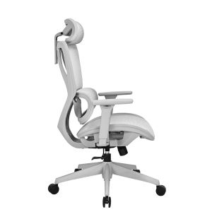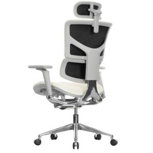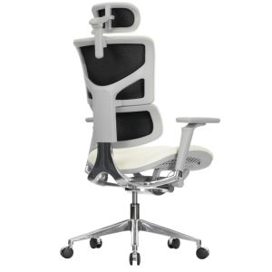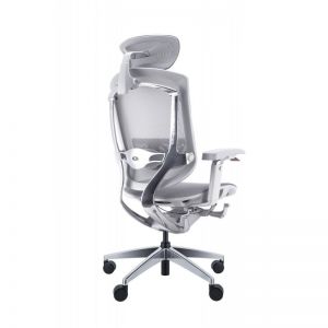 Кресло Falto Leather Premium SL, динамичный поясничный упор, натуральная кожа, каркас серый, белый