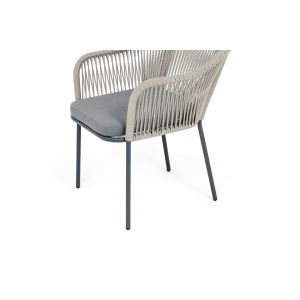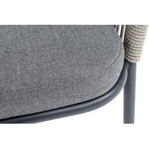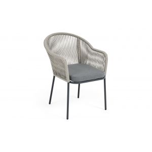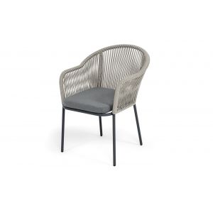 Стул 4SIS Лион плетеный из роупа, каркас алюминий темно-серый, роуп темно-серый круглый, ткань бежевая