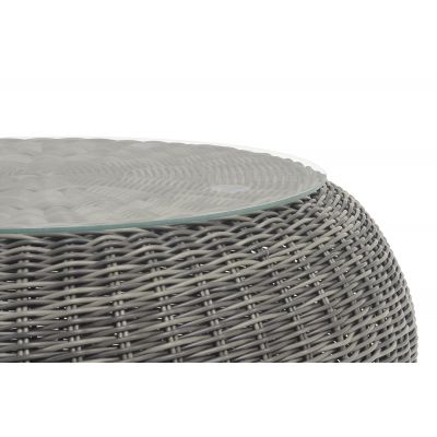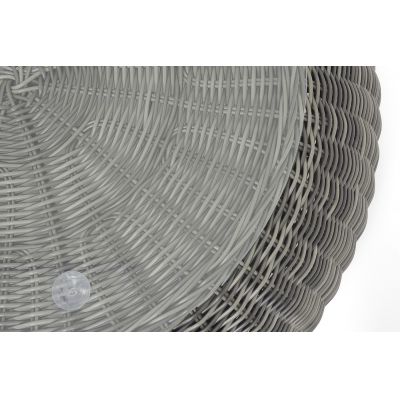 Каркас столика изготовлен из алюминия, вручную оплетенного круглым искусственным ротангом.