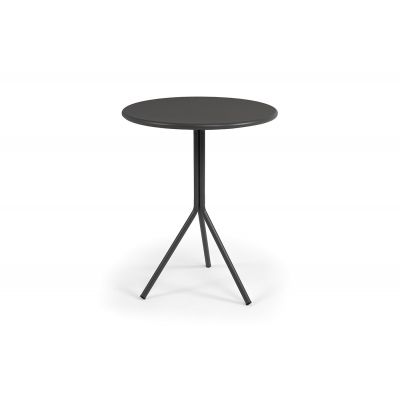 Стол круглый изготовлен из стали черного цвета, столешница - толщиной 18 мм, цвет темно-серый.