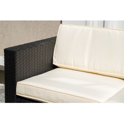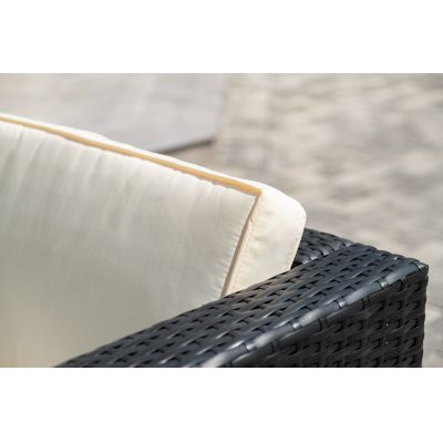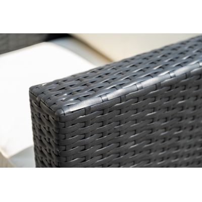 | В основе мебели - стальной каркас и плоский искусственный ротанг. Каркас оплетен с помощью ручного метода и представлен в черном цвете. | |