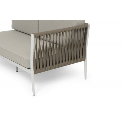 Диван модульный плетеный 4SIS Касабланка каркас алюминий, роуп серо-коричневый, ткань бежевая