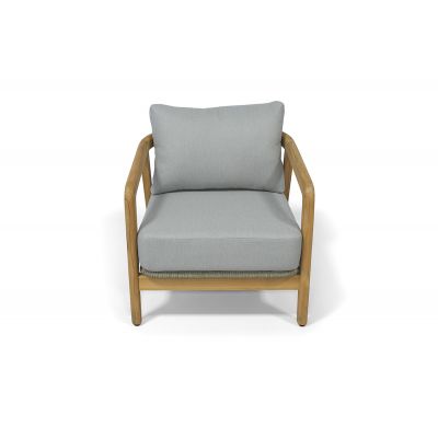 Каркас выполнен из тика — благородной древесины, известной своей прочностью, устойчивостью к внешним воздействиям и изысканной текстурой. Тёплый древесный оттенок подчёркивает природную эстетику мебели.
