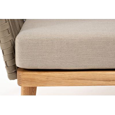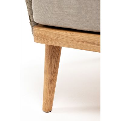 На боковинах - оплетка из синтетических лент, выполненных из полиэфирных волокон высокой прочности. Цвет плетения - серо-коричневый. Тип ткани - рогожка. Основание - дуб.