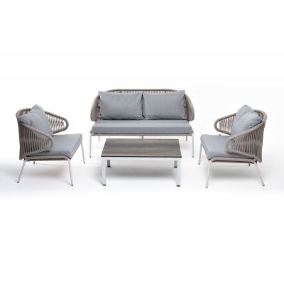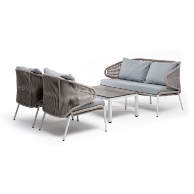 Лаунж-зона 4SIS Милан 4-местная плетеная из роупа (веревки), каркас алюминиевый белый