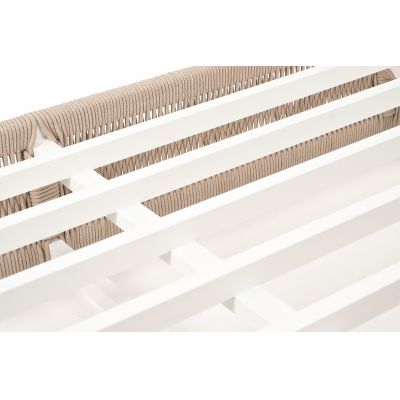 Спинка шезлонга обладает четырьмя уровнями наклона. Ширина составляет 77 см, длина 202 см и 33 см в высоту. Завершающим элементом данной модели, являются мягкие подушки из высококачественного полиэстера с влагоотталкивающей пропиткой.
