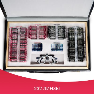 Полный набор пробных линз, позволяющий провести углублённую диагностику зрения благодаря широкому диапазону диоптрий и большому выбору вспомогательных линз. Все линзы изготовлены из оптического стекла в прочной металлической обойме с обозначением характеристик на рукоятке и вставляются в универсальную пробную оправу, которая используется для обследования зрения.