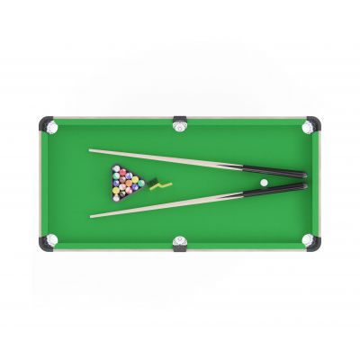 В набор входят все необходимые принадлежности: 2 кия, комплект шаров, 2 мелка, треугольник для расстановки и щётка для ухода за покрытием. Можно сразу начинать играть без дополнительных покупок.