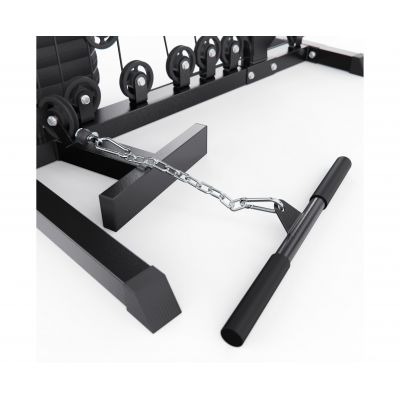 В конструкции предусмотрено 13 свободных блоков и 1 встроенный весовой блок весом 77 кг. Такая система позволяет гибко настраивать нагрузку по уровню физической подготовки — от начинающего до уверенного спортсмена. Силовой комплекс удобно использовать как для набора мышечной массы, так и для поддержания формы.