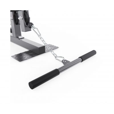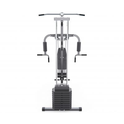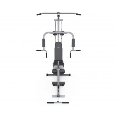 Многофункциональный силовой комплекс позволяет выполнять упражнения на грудь, спину, плечи, руки, пресс и ноги. В оснащение входят парта для бицепса, верхняя и нижняя тяга, а также тренажер «бабочка», что значительно расширяет возможности тренировок. Нижний валик предназначен для фиксации ног и выполнения упражнений на разгибание и сгибание, а также обеспечивает устойчивое положение тела при работе с верхней тягой.