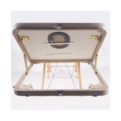 Массажный стол выполнен в цвете Camel — это тёплый и естественный оттенок, который придаёт изделию стильный и гармонично вписывается в интерьер дома или массажного кабинета.