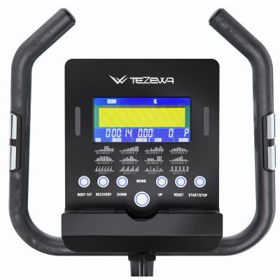 На встроенном LCD-дисплее с синей подсветкой отображаются все важные параметры тренировки: время, скорость, дистанция, калории, пульс (сенсорные датчики на поручнях), обороты в минуту (RPM), а также мощность в ваттах. Это делает тренировки максимально контролируемыми и эффективными.