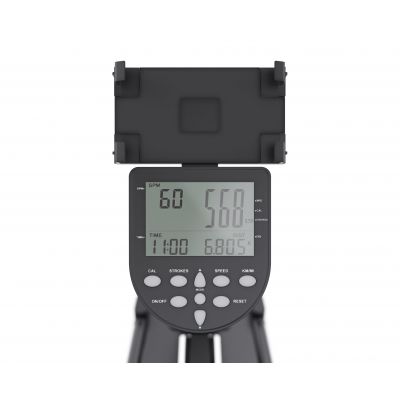 Тренажёр оснащён монохромным LCD-дисплеем, отображающим ключевые показатели тренировки — калории, дистанцию, скорость и общее количество гребков. Для расширения функционала предусмотрено подключение по Bluetooth к приложениям FITLOG и KINOMAP, что позволяет отслеживать прогресс и делать занятия более увлекательными. В комплект входят две батарейки типа AA, необходимые для работы дисплея.