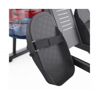 Рифленые педали с регулируемыми ремешками обеспечивают надежную фиксацию ног, а подставка под планшет позволяет использовать устройства для удобства во время тренировки. Также есть компенсаторы неровности пола, которые гарантируют стабильность тренажера, а транспортировочные ролики обеспечивают лёгкое и удобное перемещение, позволяя без труда менять его расположение в помещении.