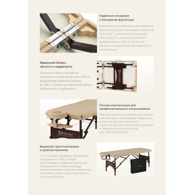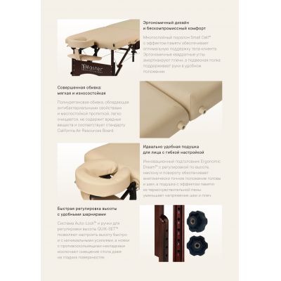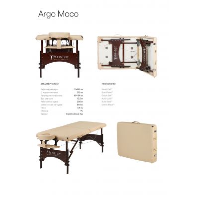 Несмотря на малый вес — всего около 13,6 кг — складной стол Argo отличается прочностью и удобством. Он оснащён мягкой обивкой из полиуретана, устойчивого к маслам и влаге.