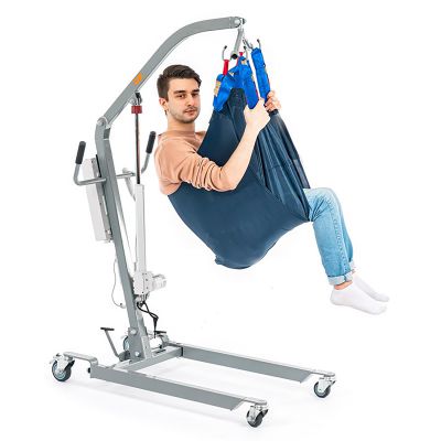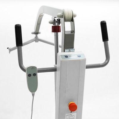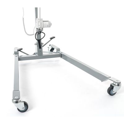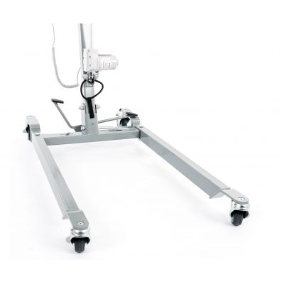 Электрический прикроватный подъемник, выполненный на металлической раме, складывающейся для удобства хранения и транспортировки. Раздвижные передние колёсные опоры высотой всего 115 мм для максимальной устойчивости и возможности заезда под низкую мебель.