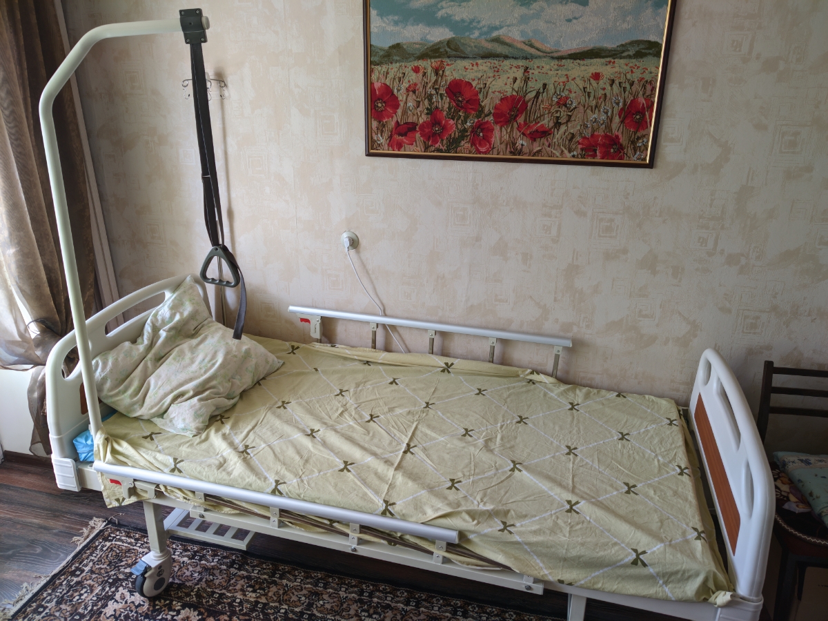 При необходимости можно дополнительно установить штангу для подтягивания, столик, инфузионную стойку или ванночку для мытья головы.
