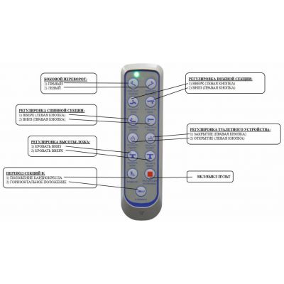 Кровать комплектуется надкроватным столиком, инфузионной стойкой, штангой для подтягивания и двумя вариантами спинок (полукруглыми либо прямоугольными). | |