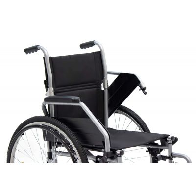 Одной из ключевых особенностей инвалидной коляски MET TRANSIT 350 являются эргономичные подлокотники со скосом. Эта конструктивная деталь обеспечивает удобное приближение к столу без необходимости наклоняться вперед, что способствует поддержанию естественного положения спины.
