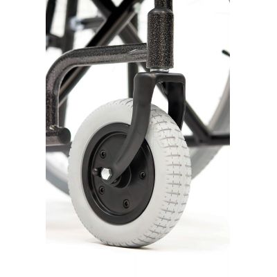| Адаптивность. Модель доступна как с литыми колёсами для использования в помещениях, так и с пневматическими колёсами для передвижения на улице. | |