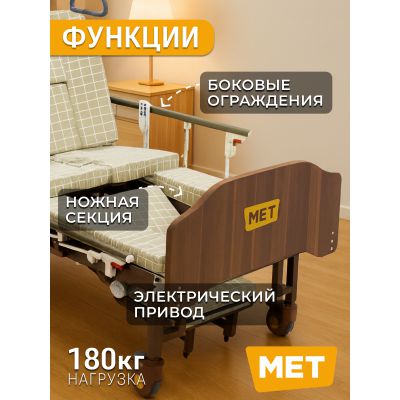 Электрическая кровать MET EMET с туалетным устройством, с "ушками, с положением кардио-кресло и ванной для мытья головы
