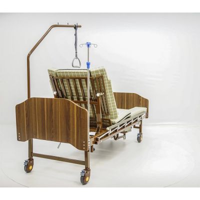 Быстросъемные спинки головы и ног выполнены из ламинированной МДФ цвета "орех", придающими кровати "небольничный" вид и позволяют с лёгкостью осуществлять уход за пациентом
