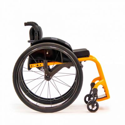 Коляска активного типа, сочетающая легкость и маневренность. Комбинация алюминиевой рамы и карбоновой оси с регулировкой развала обеспечивают коляске малый вес и легкость хода.