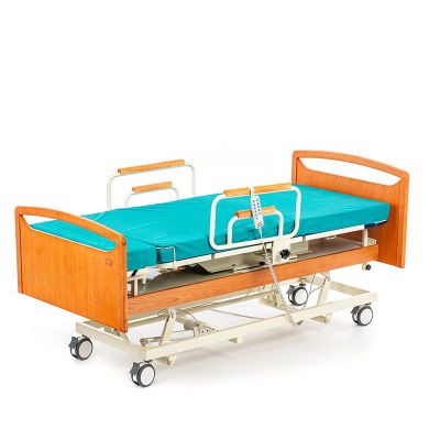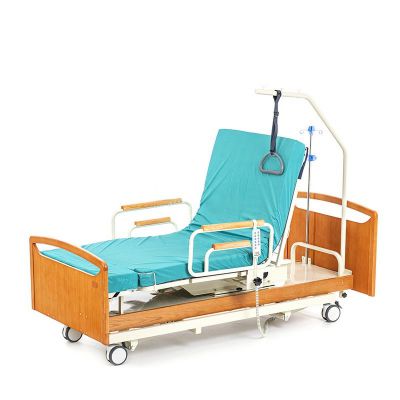 Медицинская кровать с электрическим приводом и поворотным креслом удобна как для пациента, так и для человека, ухаживающего за ним.