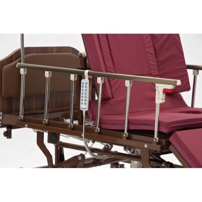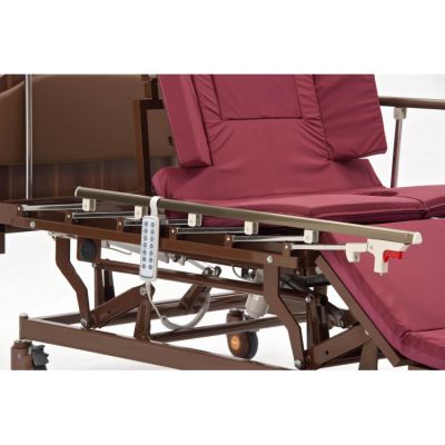 Функциональная кровать с электроприводом, электрифицированной функцией переворачивания и туалетным устройством. Головная секция имеет "ушки", что позволяет больному отдыхать и спать в сидячем положении.