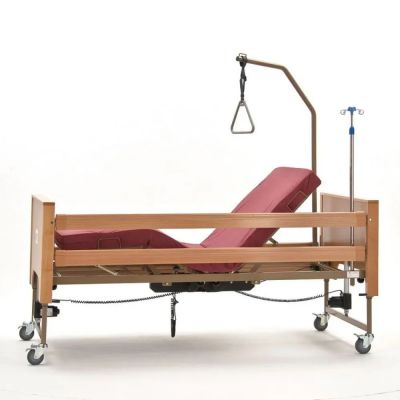 Кровать медицинская функциональная 4-х секционная, с электрическим приводом для регулировки высоты, спинной и тазобедренной (ножной) секции и угла антитренделенбург, с пультом управления.