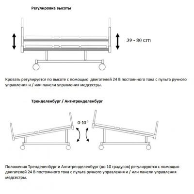 Секции регулируются по углу наклона с помощью электрического привода, снабжённого блокировкой функций на пульте. | |