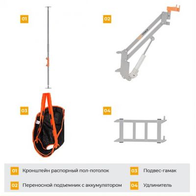 ПЕРЕНОСНОЙ МОДУЛЬНЫЙ ПОДЪЕМНИК оснащен встроенным аккумулятором и пультом управления на длинном витом шнуре.