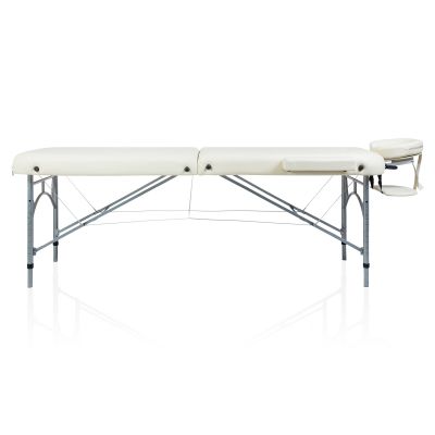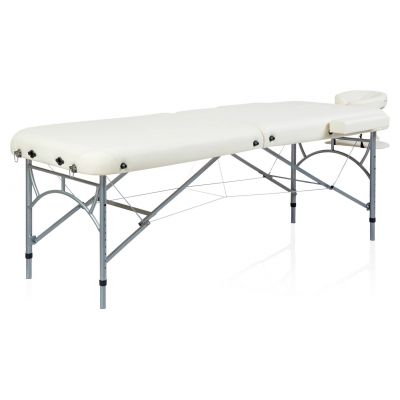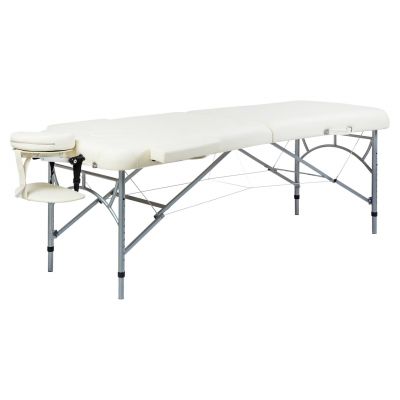 Складной массажный стол Premium AL 2 имеет приятную на ощупь «Skin-touch» обивку с мягким наполнителем толщиной 6 см. Однако, главная особенность этого стола – его особо легкая поддерживающая конструкция и регулируемые по высоте ножки, сделанные из алюминия.