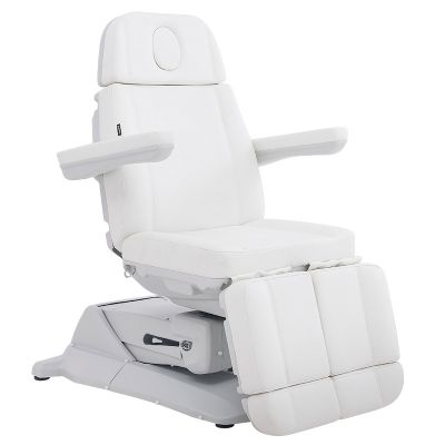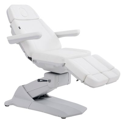 Современное педикюрное кресло высокого класса с очень устойчивой конструкцией. Оснащено 3-я двигателями, которые регулируют высоту, наклон спинки и угол наклона сиденья. Подножки регулируются по высоте независимо с помощью газлифтов. Откидные подлокотники и регулируемый подголовник с отверстием для лица. Обивка из высококачественного полиуретана, легко моющегося и прочного.
