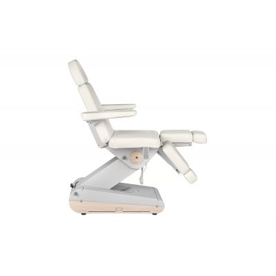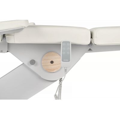 Двигатели позволяют легко регулировать спинку, высоту и положение угла наклона кресла с помощью пульта ручного управления, ножные секции регулируются пневматикой.