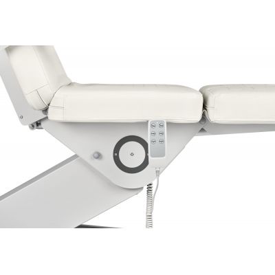 Двигатели позволяют легко регулировать спинку, высоту и положение угла наклона кресла с помощью пульта ручного управления, ножные секции регулируются пневматикой.