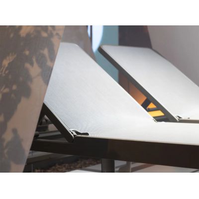 Разработанный Раффаэлло Галиотто, лежак представлен в пяти элегантных вариантах тон в тон и покрыт съёмной воздухопроницаемой тканью, обеспечивающей прочность и долговечность даже при частом использовании. Лежак оснащен четырьмя положениями регулировки спинки, нескользящими ножками и встроенными колесиками для лёгкого перемещения.
