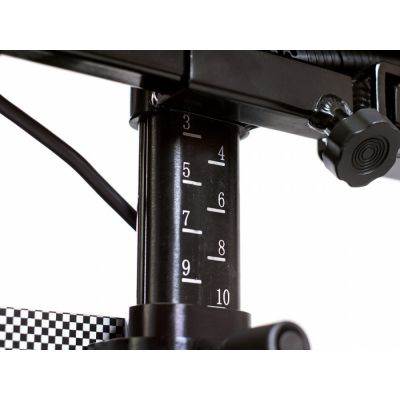 Оснащение - ремень для стоп, поддержка для голени, амортизаторы, ремень безопасности, съемные подушки сиденья и спинки.