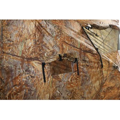 | Вентиляционные окна на стене и двери палатки для проветривания во время ночлега или дождя. | |