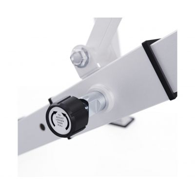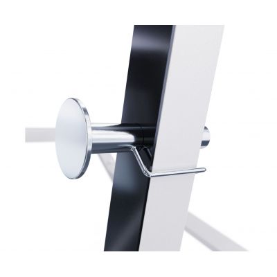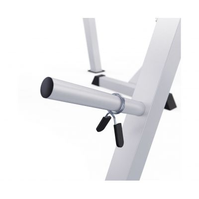 Скамья для жима имеет посадочное место для хранения дисков 25 мм. Длина посадочного места равна 20 см, а в комплекте идут 2 пружинных замка.