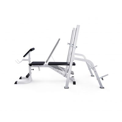 Сомневаетесь? - Посмотрите рейтинг ТОП-10 по категории «Силовые скамьи со стойками»Скамья со стойками под штангу с партой GORILLA белого цвета — это удобный и функциональный тренажёр для домашних тренировок.