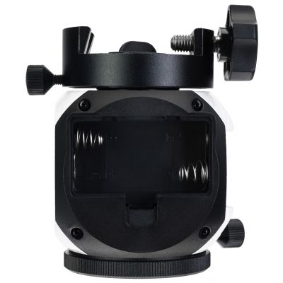 Высокая точность работы устройства обеспечивается продуманной конструкцией привода. В его основе находятся алюминиевая шестерня на 144 зубца, латунная втулка с червячным механизмом, зубчатый ремень и шкив, гарантирующие плавное ведение объектов без люфтов. Для питания монтировки можно использовать 2 батарейки типа АА, которых хватит на 24 часа непрерывной работы, либо внешний источник, подключенный через порт microUSB.