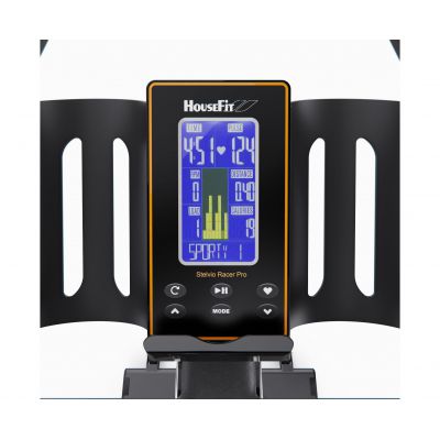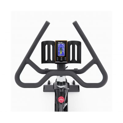 На LCD-дисплее с синей подсветкой отображаются все необходимые параметры: скорость, время, дистанция, сожжённые калории, мощность (ватт), обороты в минуту и пульс (для измерения пульса необходимо использовать нагрудный ремень, не входит в комплект). Консоль включает 15 тренировочных программ: ручной режим, начинающий (4 программы), продвинутый (4 программы), спортивный (4 программы), кардио и тренировку с постоянной мощностью. Поддержка Bluetooth позволяет подключить тренажер к нагрудному пульсометру.
