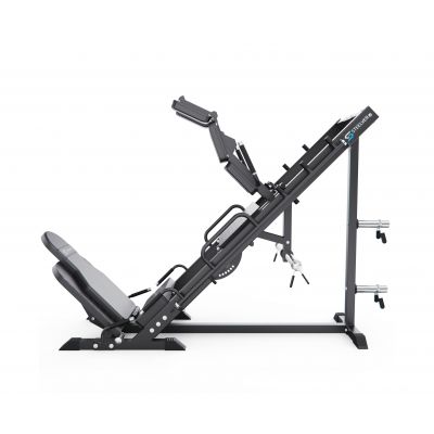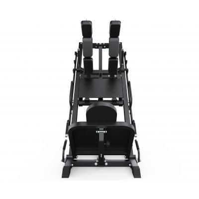 Конструкция позволяет регулировать положение под рост пользователя, а также переставлять спинку, что даёт возможность выполнять различные упражнения в режимах жима ногами и гакк-приседаний. Тренажер имеет прочную раму с профилем 75 х 75 х 3 мм, что гарантирует надежность и долговечность конструкции.