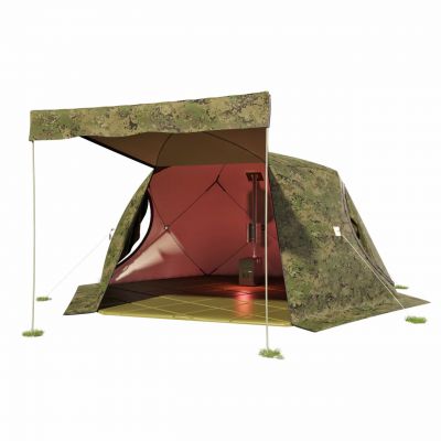Конструкция имеет вывод под печную трубу, что дает дополнительные возможности для обогрева в холодное время года. Также есть москитная сетка, а значит, палатка подойдет и для летних походов.