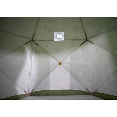 Модель имеет стеклопластиковый каркас с добавлением карбона и синтетический не продуваемый тент (оксфорд 240PU). Внутренняя подкладка выполнена из термостойкой ткани, стеганного полотна и синтепона. Дополнительная прослойка пространства позволяет создавать воздушную подушку для длительного сохранения тепла внутри.