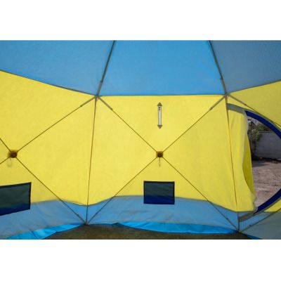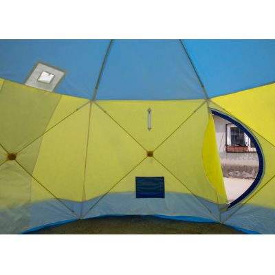 | Вместительность. Шестигранная конструкция с диагональю 4,2 м и высотой 2,2 м рассчитана на 6 и более человек. Пространства хватит для размещения людей, снаряжения и печки. | |