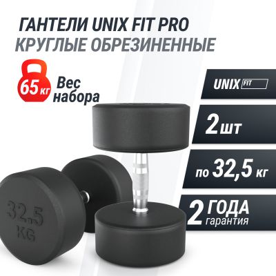 Гантель UNIX Fit PRO круглая обрезиненная 32,5 кг, 2 шт